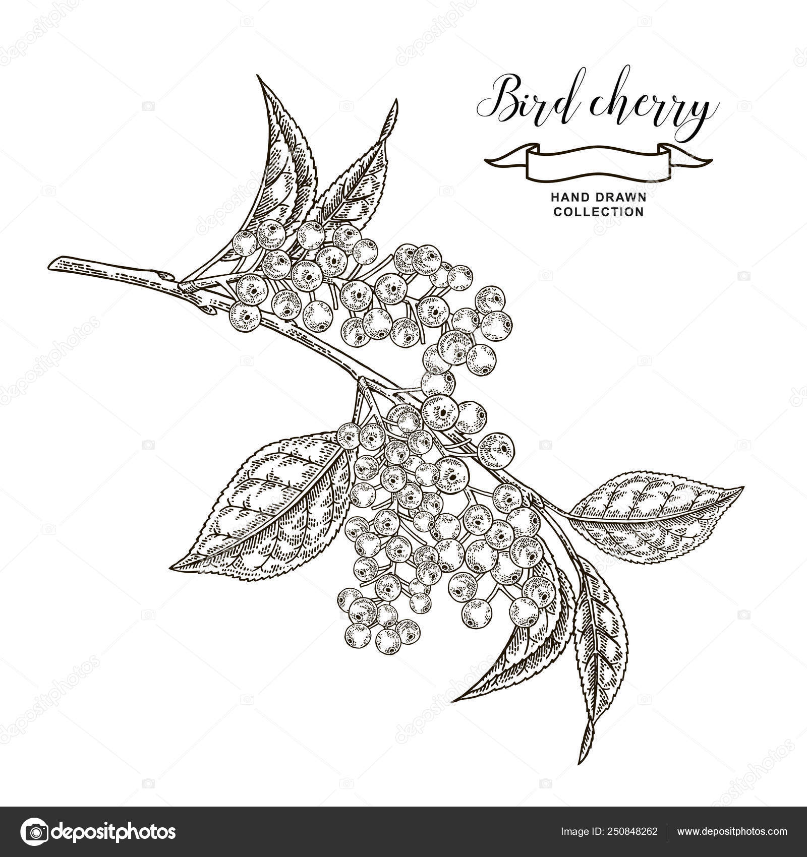 Bird Cherry Tree Branch With Berries And Leaves Hand Drawn Bird Cherry Vector Illustration Engraved Stock Vector Image By C Jka 250848262